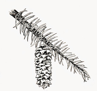 SPRUCE NEEDLES AND CONE